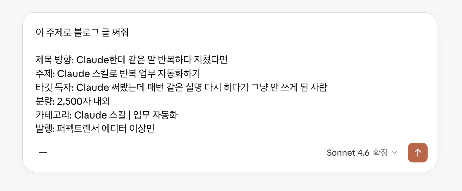 Claude를 켜고 새 대화에서 아래 형식으로 입력합니다.